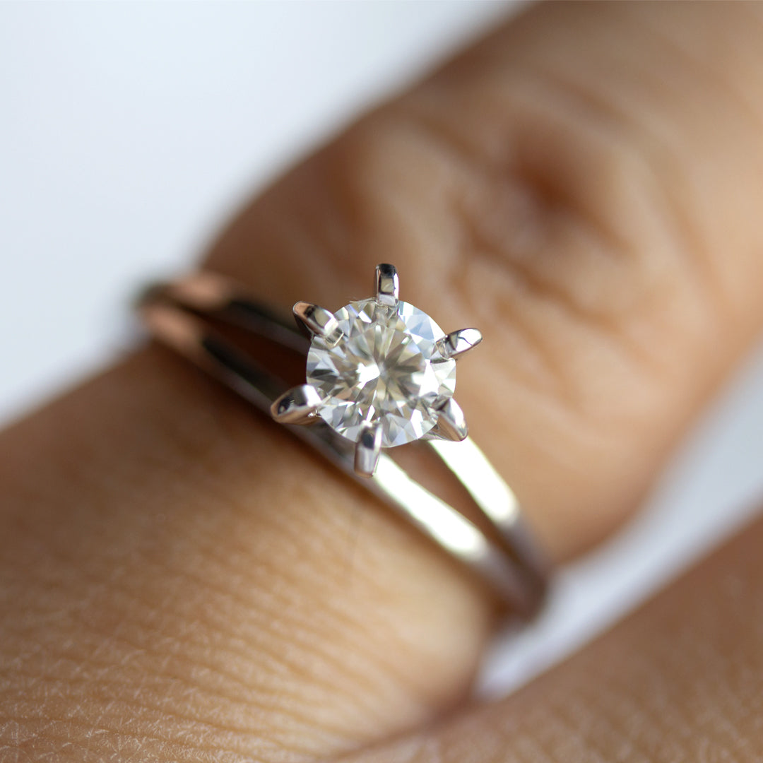 La moissanita es una piedra preciosa que ofrece un brillo incomparable, similar al del diamante, pero con un enfoque más sostenible. En nuestros anillos de compromiso, combina elegancia, durabilidad y un destello único para simbolizar tu amor eterno.