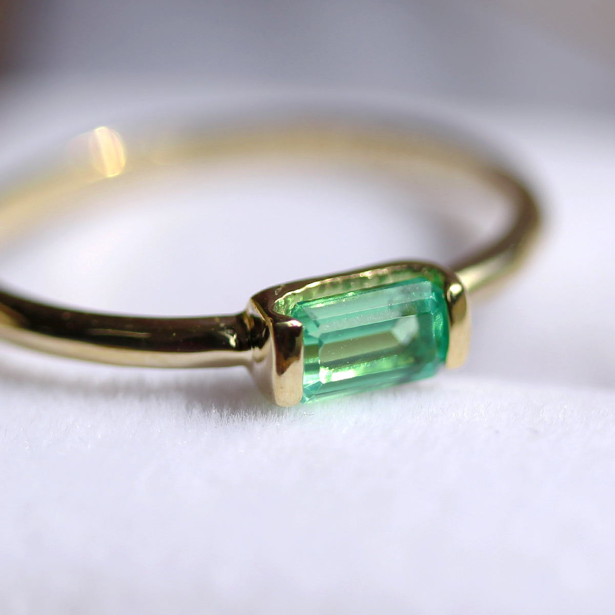 Haz que este anillo de esmeralda de laboratorio sea parte de tu historia de amor, simbolizando no solo compromiso, sino también un futuro responsable