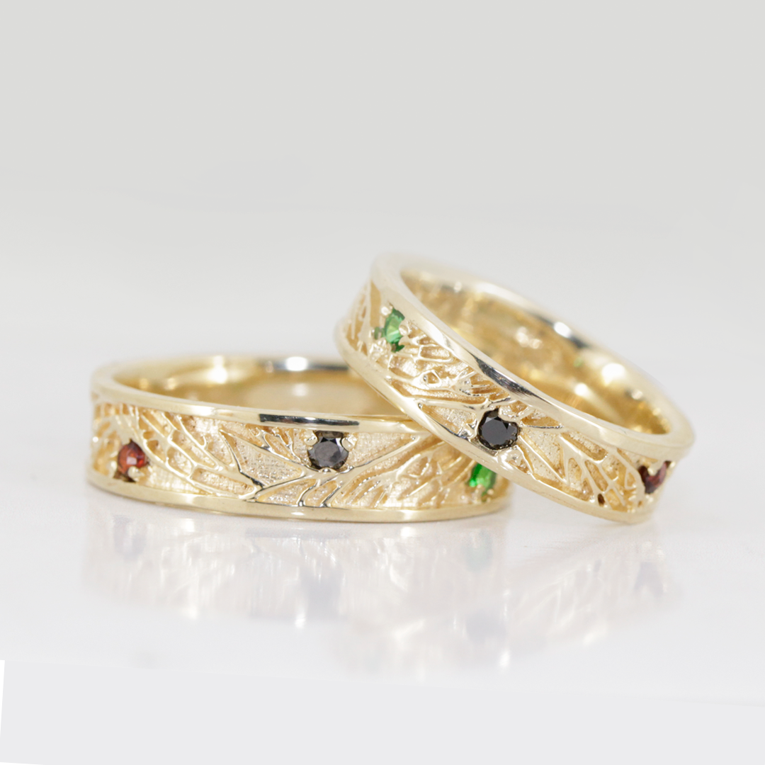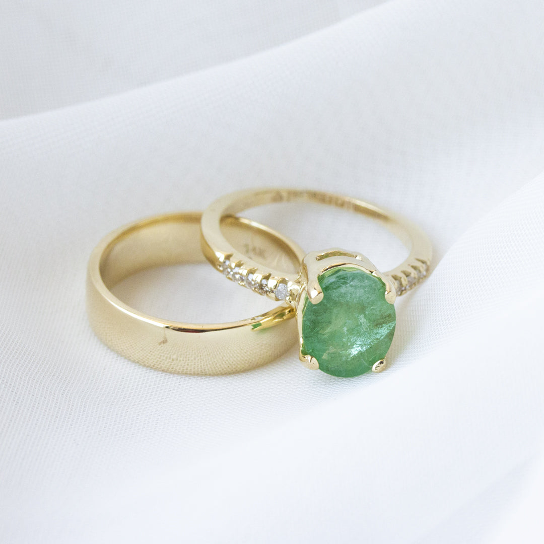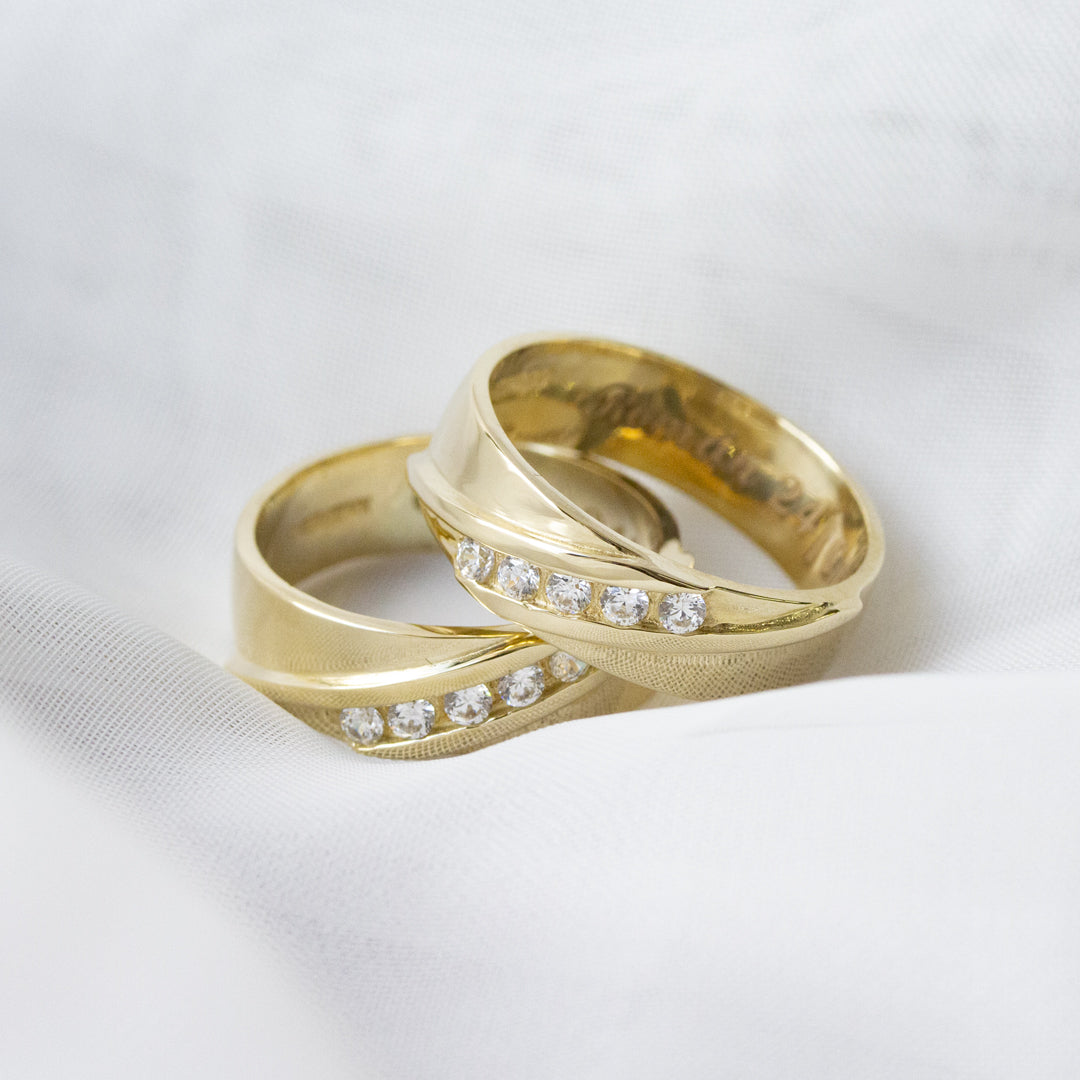 Cada juego de argollas, ya sea clásico, moderno, o algo intermedio, está elaborado en el metal que tu selecciones, desde oro blanco, oro amarillo, oro rosa de 10k, 14k ó 18 en pedidos especiales.